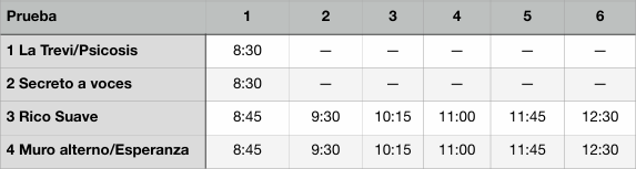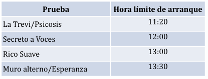11.TIEMPOS DE SUBIDA Y HORAS LÍMITE DE ARRANQUE POR PRUEBA